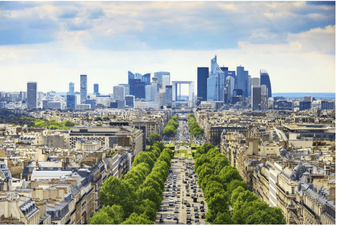 O jungla de arhitectura futurista din sticla si otel, La Defense a aparut in anii 1960 si noi zgarie-nori se construiesc si astazi.