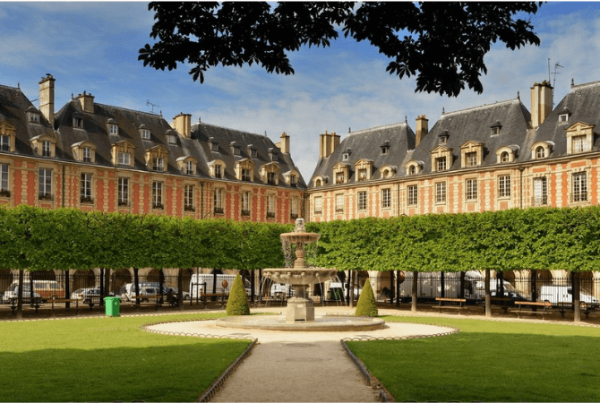 Conceput si construit dintr-o data la inceputul secolului al XVII-lea, Place des Vosges este ceea ce a facut Marais atat de la moda pentru clasa superioara a Parisului in urmatorii 200 de ani.