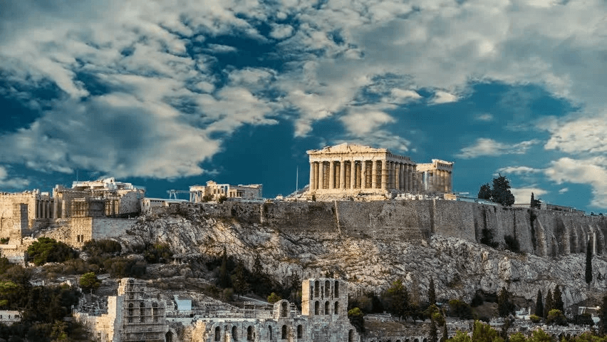 Cea mai emblematica cladire este Partenonul, cel mai mare templu din perioada antichitatii clasice, datand de la 447 i.Hr. pana la 338 i.Hr. Cu randurile sale monumentale de coloane dorice si detaliile sculpturale uimitoare, templul este o priveliste uimitoare. In friza din partea de est, reliefurile infatiseaza nasterea zeitei Atena.