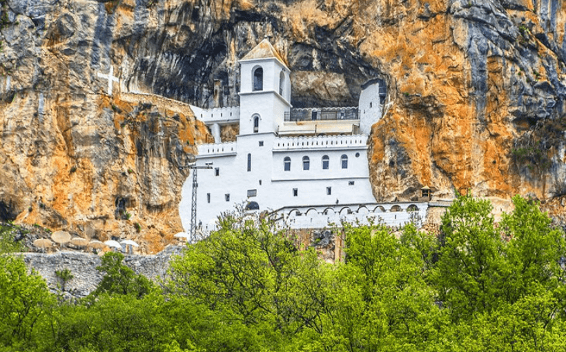 Construita in secolul al XVII-lea ca refugiu impotriva invadatorilor Imperiului Otoman, Manastirea Ostrog este acum o destinatie importanta de pelerinaj crestin. Asezata pe un afloriment mare de granit, intreaga manastire a fost sculptata dintr-o pestera pe o stanca aproape verticala.