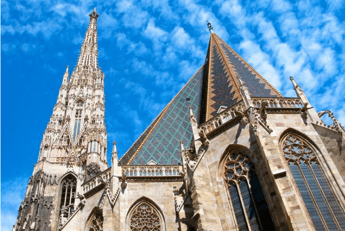 Cel mai important edificiu gotic din Viena si biserica catedrala a arhiepiscopiei din 1722, Catedrala Sf. Stefan (Stephansdom) se afla in centrul istoric al Vienei. Biserica originala romanica din secolul al XII-lea a fost inlocuita cu una romanica tarzie in secolul al XIII-lea, ale carei ramasite sunt poarta masiva si Turnurile Pagane (Heidenturme).